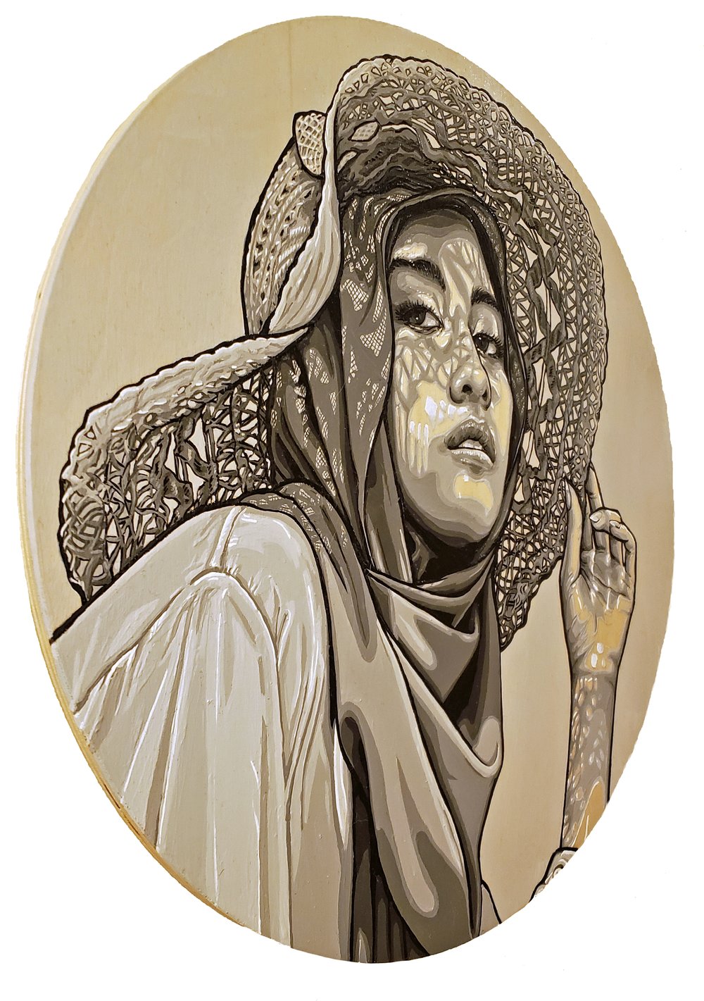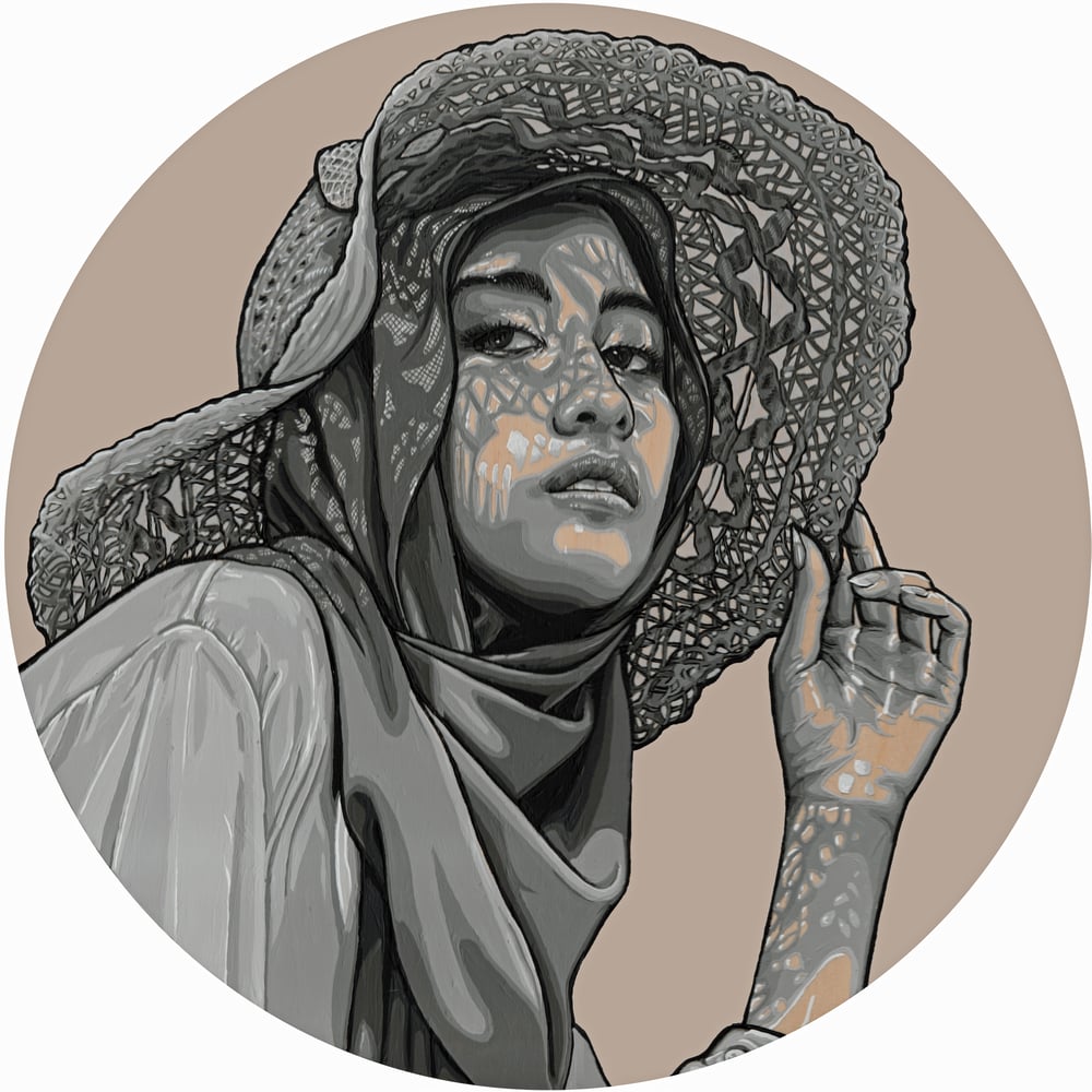 Acrylic on circular baltic birch panel, finished in semi-gloss varnish