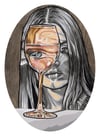 Acrylic and colored pencil on circular baltic birch panel, finished in semi-gloss varnish